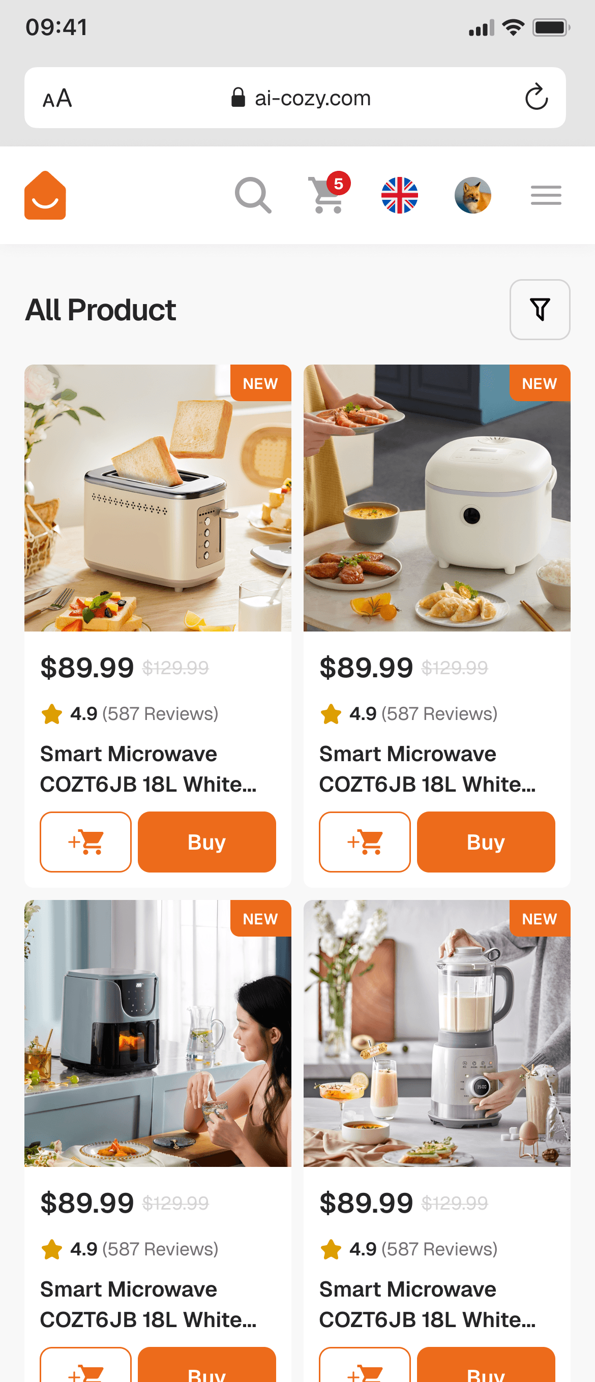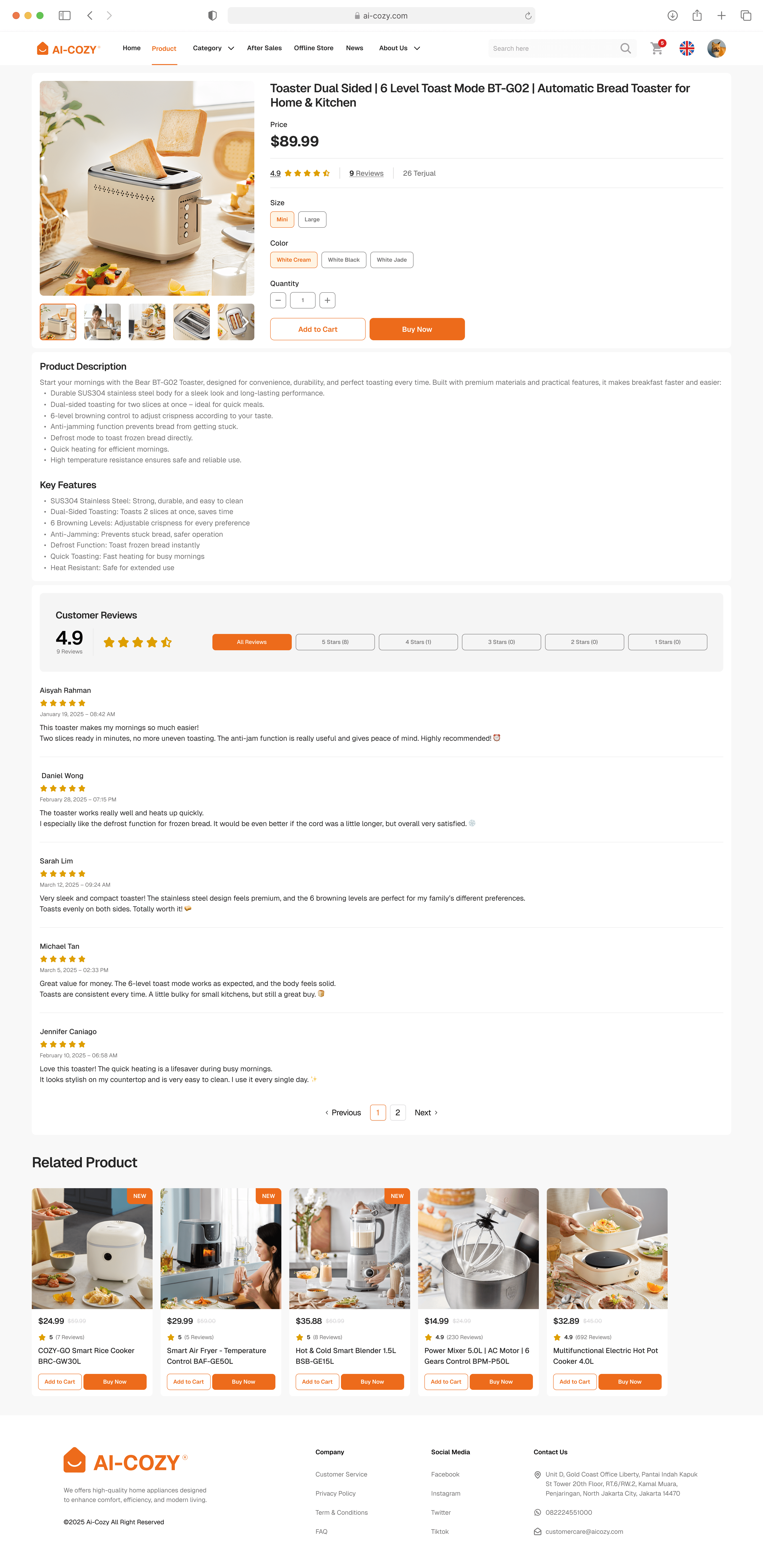 Web UI/UX Design for Ai-Cozy Smart Appliances