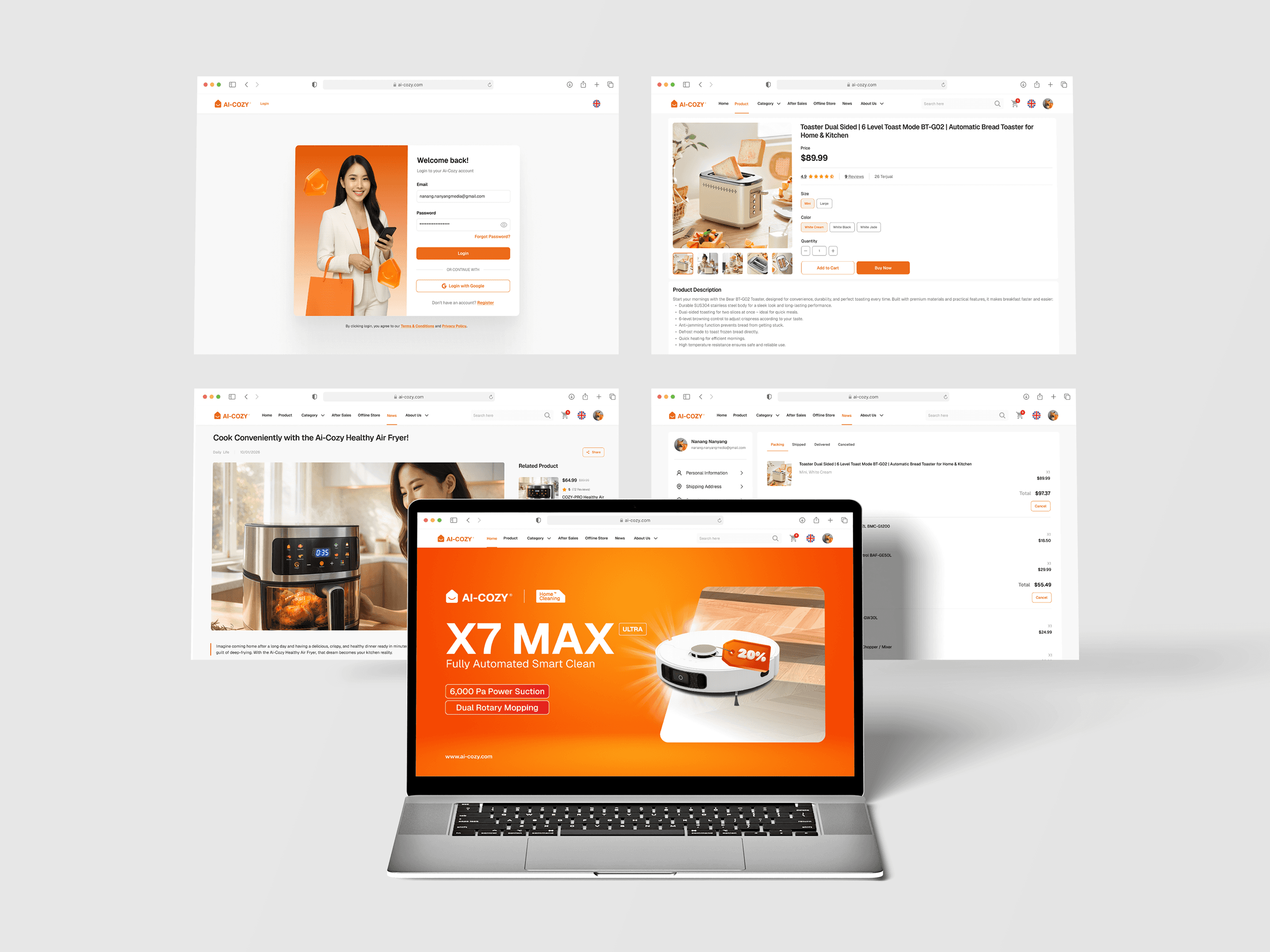 Following the web launch, I developed the mobile version for Ai-Cozy to ensure a superior on-the-go shopping experience. I optimized the interface for mobile accessibility, focusing on thumb-friendly navigation, clear product galleries, and a frictionless order tracking system. This mobile-first approach ensures that Ai-Cozy’s smart home solutions are easily accessible to users anytime, anywhere.